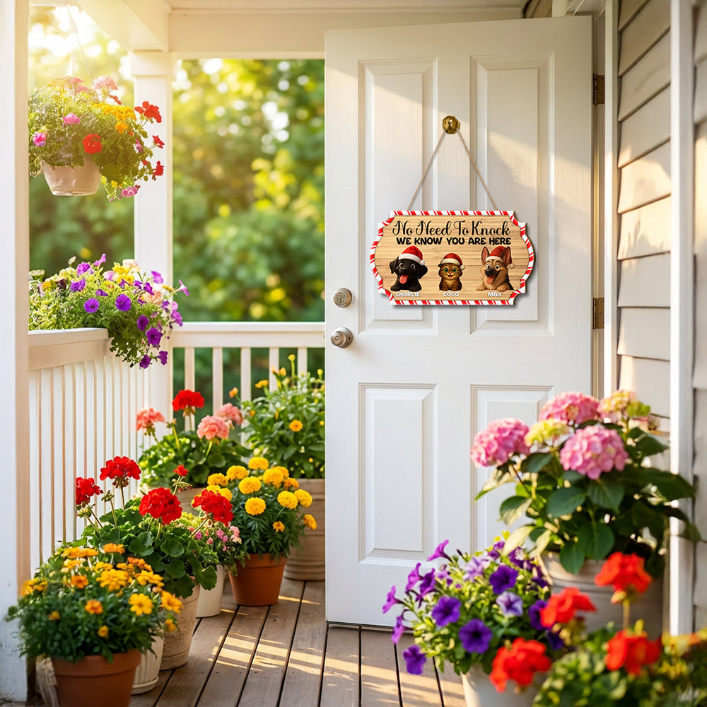 • Personalized Christmas Pet Door Sign – “No Need to Knock, We Know You Are Here” – Cat & Dog Wooden Sign - Upload Photo