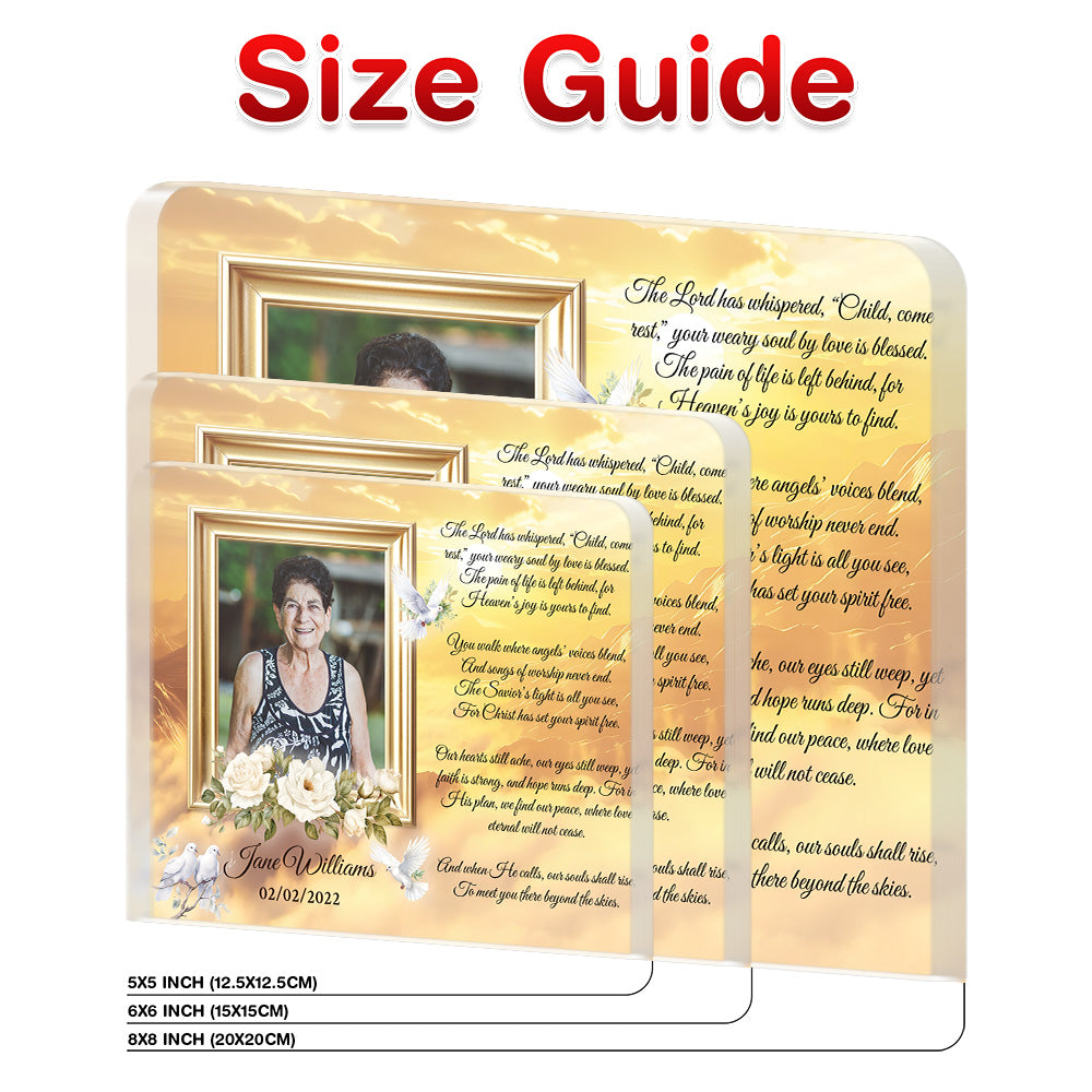 • Personalized Memorial Plaque with Photo – Golden Sky & Doves, “Child, Come Rest” Christian Sympathy Gift